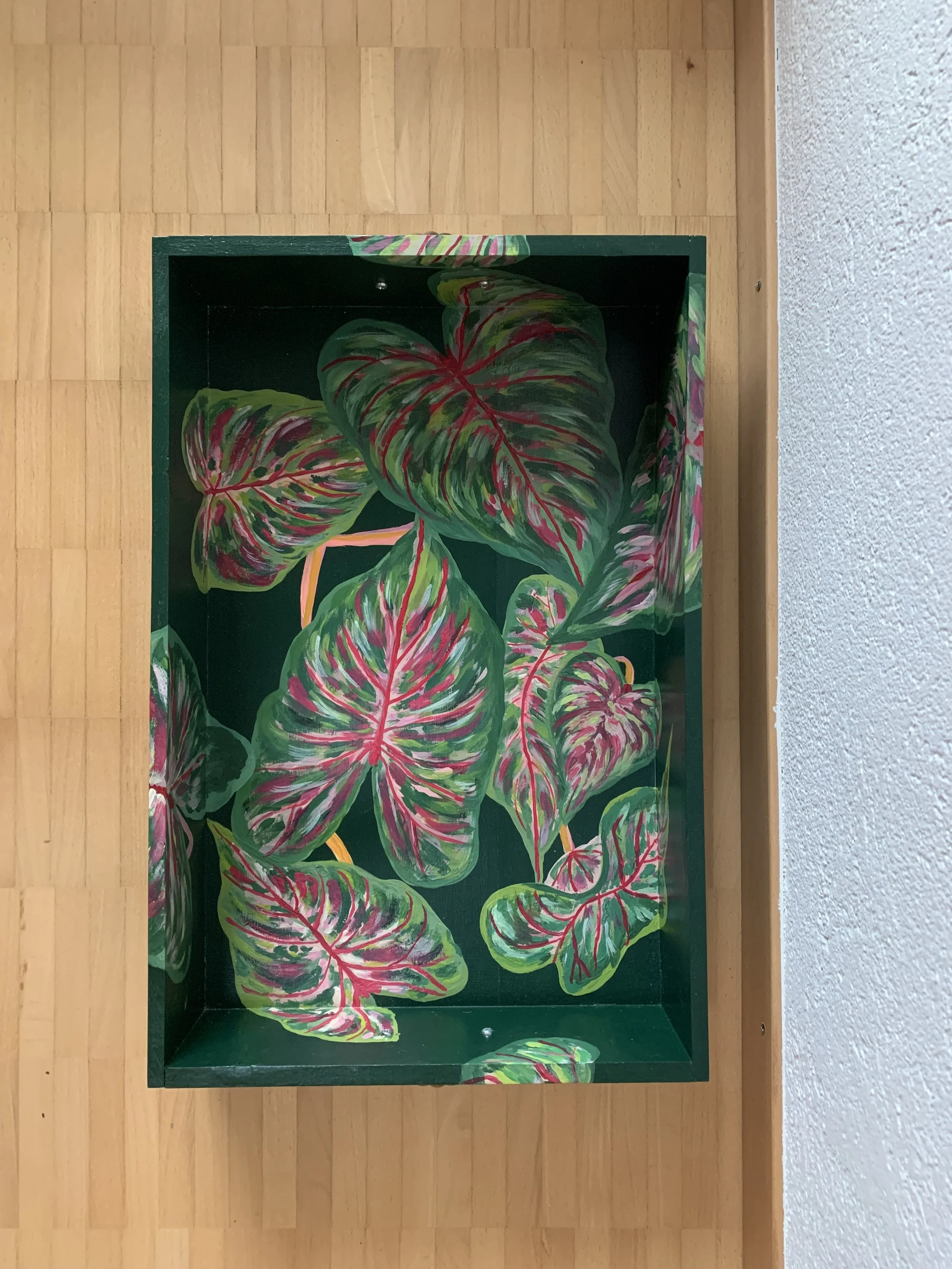 Holzweinkisten, von Hand mit Acrylfarben veredelt, kreativ komponiert und neu interpretiert. Ab CHF 79.– pro Person